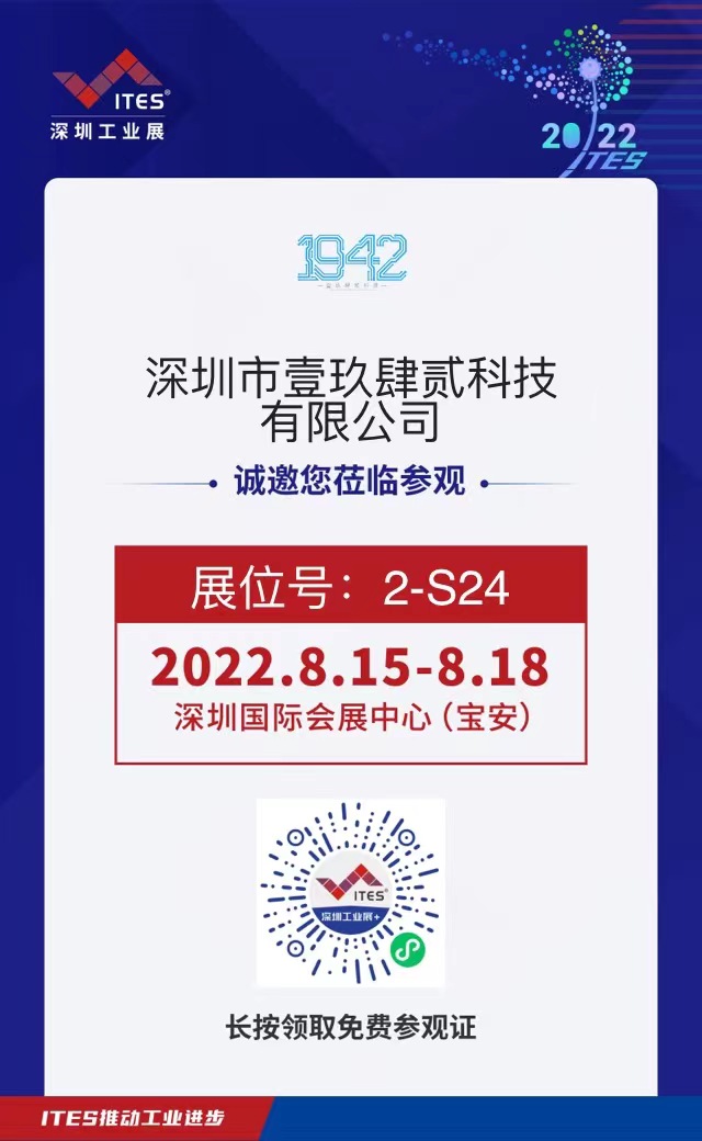 2022年ITES深圳國(guó)際工業(yè)制造技術(shù)展覽會(huì)將于2022年8月15日在深圳國(guó)際會(huì)展中心(寶安新館)盛大開幕,smt貼片加工廠|深圳市壹玖肆貳科技有限公司|再次亮相2022年ITES深圳工業(yè)展,在此我們真誠(chéng)的邀請(qǐng)您蒞臨2-S24展位參觀指導(dǎo),我們期待與您相遇。