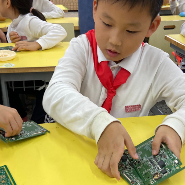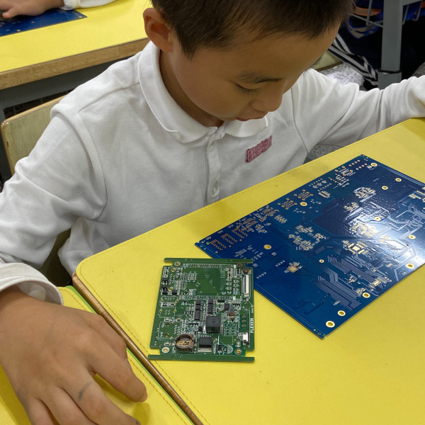 (分發機器人內部電路板到每一位小朋友)